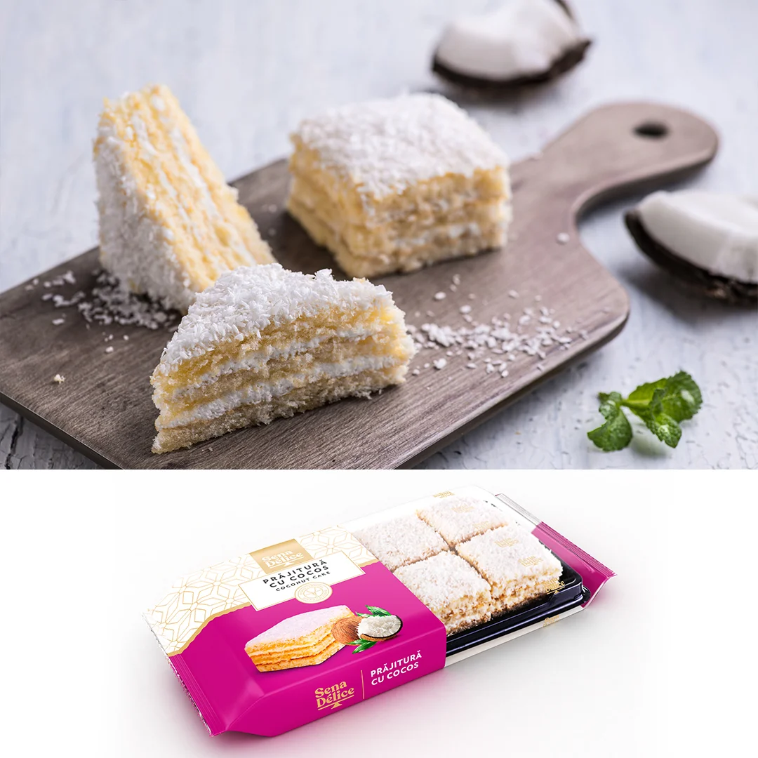 Alege un gust de vară pentru toată perioada anului. Blaturi pufoase de pandișpan, cremă delicată de cocos și o aromă exotică inconfundabilă. Lasă fiecare felie și fiecare fulg de cocos să te răsfețe și să îți facă pauza de dulce mai bună.